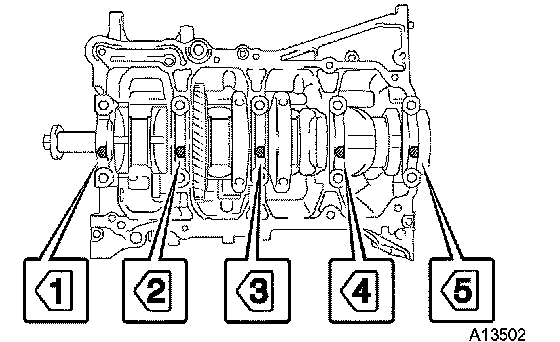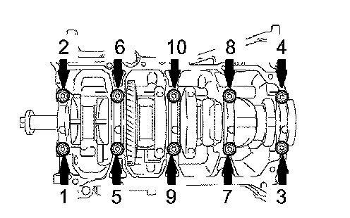 g) Retighten the bearing cap bolts by 90° in the numerical order shown in the illustration.