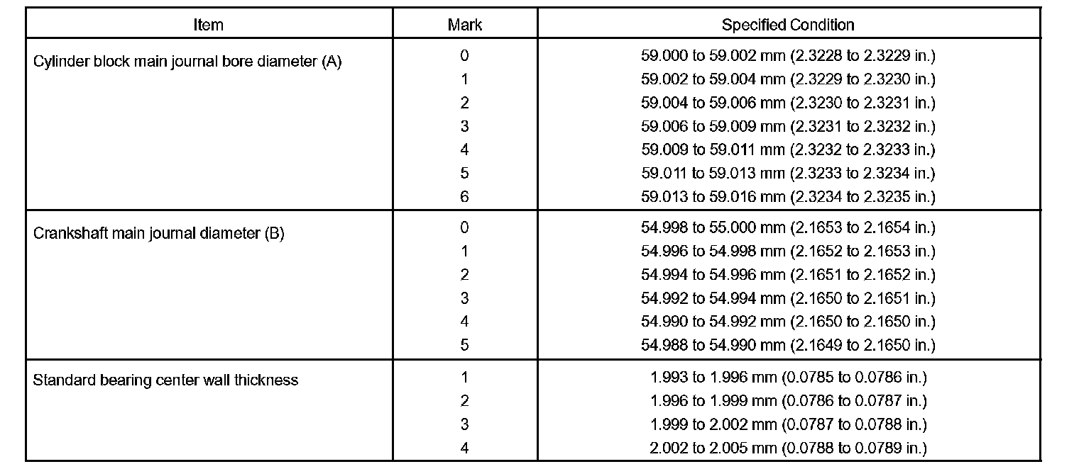 Specified oil clearance: 0.005 to 0.100 mm (0.0002 to 0.0020 inch)