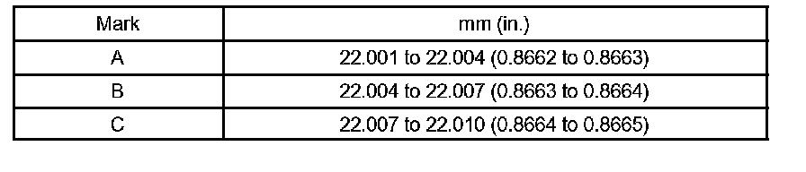 Bushing inside diameter: 22.005 to 22.014 mm (0.8663 to 0.8667 inch)