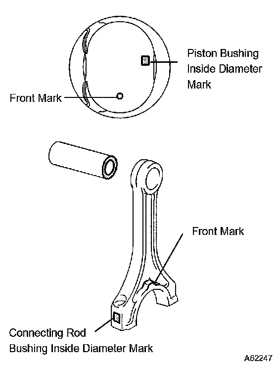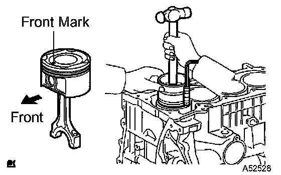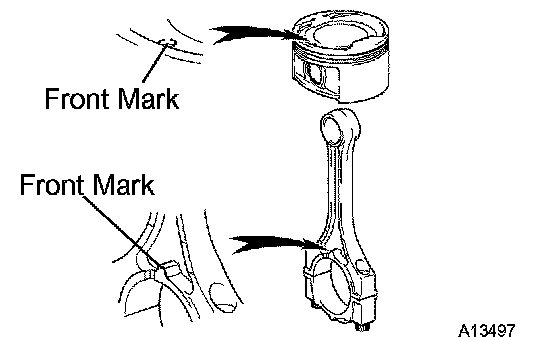 c) Align the front marks of the piston and connecting rod, and push in the piston with your thumb.