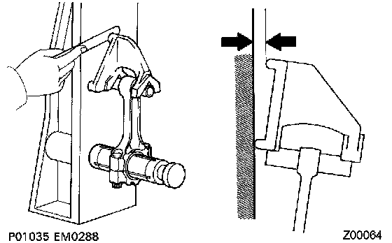 a) Using a rod aligner and feeler gauge, check the connecting rod alignment.