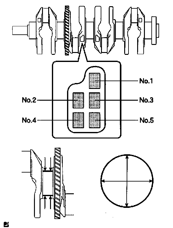 If the diameter is not as specified, check the oil clearance (see step 2). If necessary, replace the crankshaft.