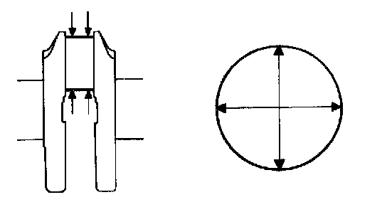e) Check each crank pin for taper and out-of-round as shown in the illustration.