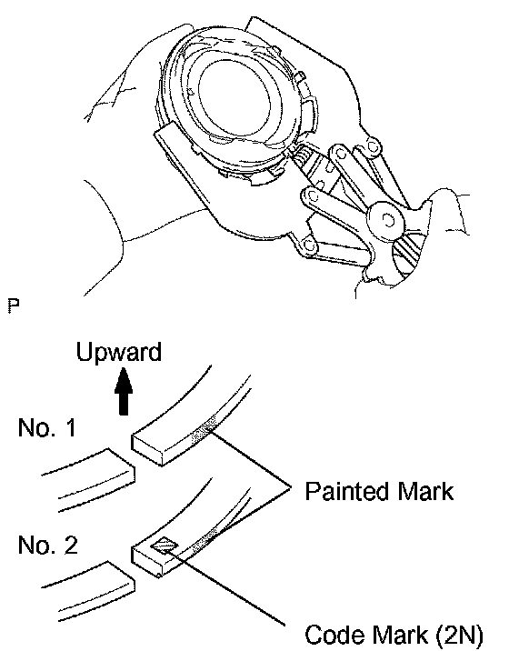 NOTICE: Install the compression ring No. 2 with the code mark (2N) facing upward.