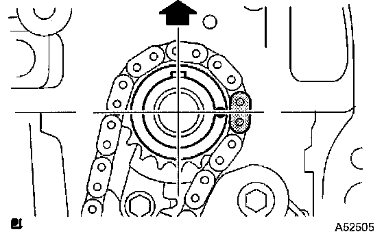 d) Align the mark links (gold or yellow colored links) with the timing marks of the camshaft timing gear and camshaft timing sprocket, and install the chain.