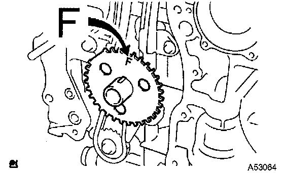 g) Align the adjusting hole of the sprocket with the groove of the oil pump.
