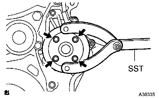 a) Using SST, install the water pump pulley.