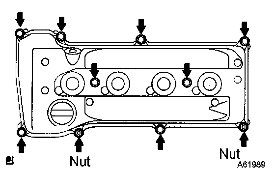 c) Install the cylinder head cover with the 8 bolts and 2 nuts.
