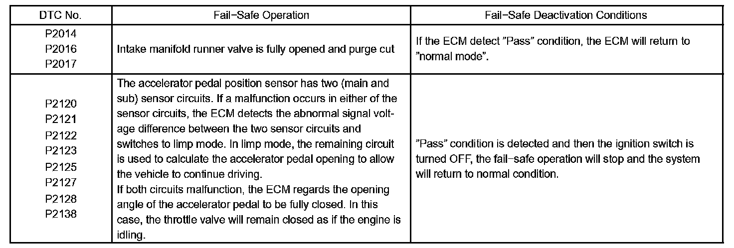 If any of the given codes are recorded, the ECM enters fail-safe mode.