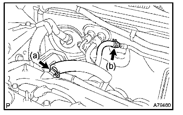 f. Disconnect the water by-pass hose No. 2.