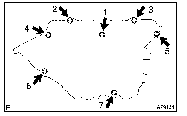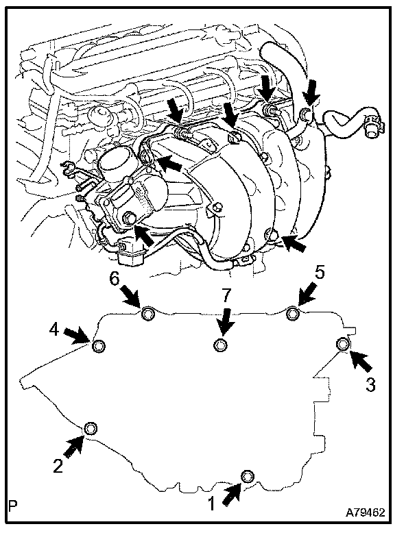 h. In order to remove the intake manifold, Uniformly remove the 5 bolts and 2 nuts in the sequence shown in the illustration.
