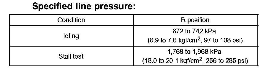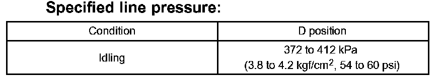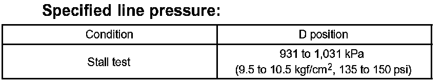 11. Firmly depress the brake pedal, shift to the D position, depress the accelerator pedal all the way down and check the line pressure while the stall test is performed.