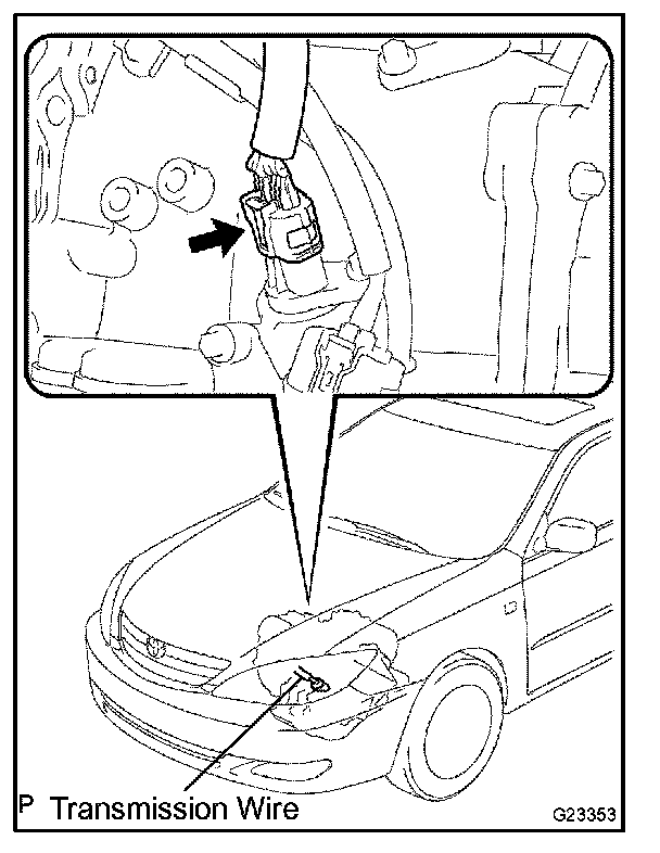 15. Connect the transmission wire connector, depress the brake pedal firmly, shift to the R position and check that the line pressure while the engine is idling and during the stall test.