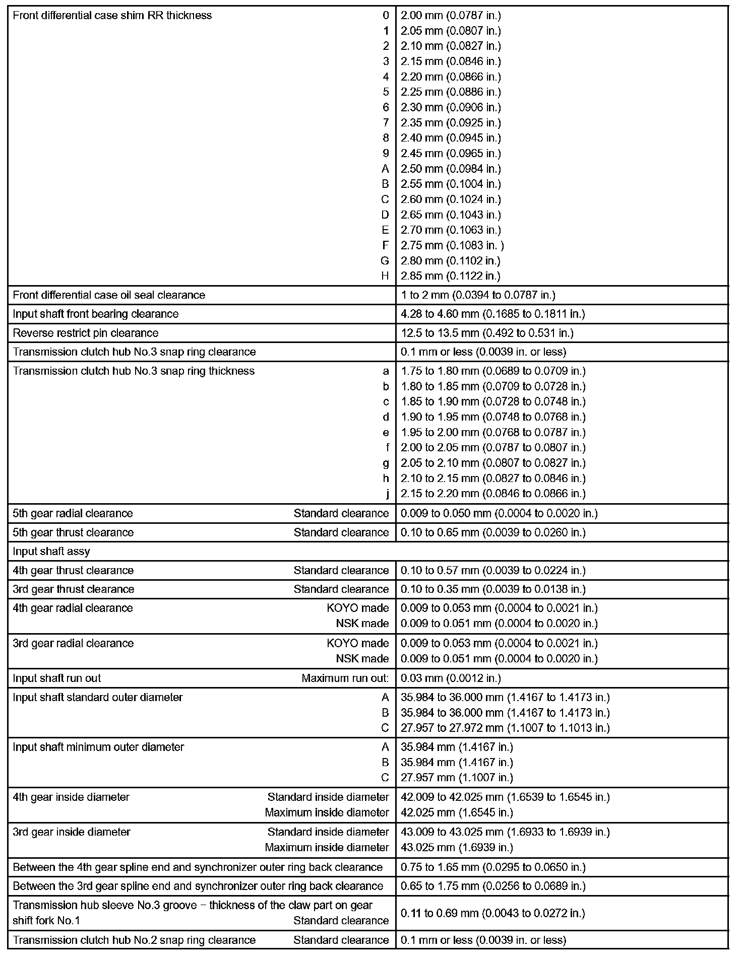 Manual Transmission / Transaxle-Service Data (Part 4):