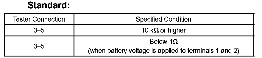 If the result is not as specified, replace the relay.