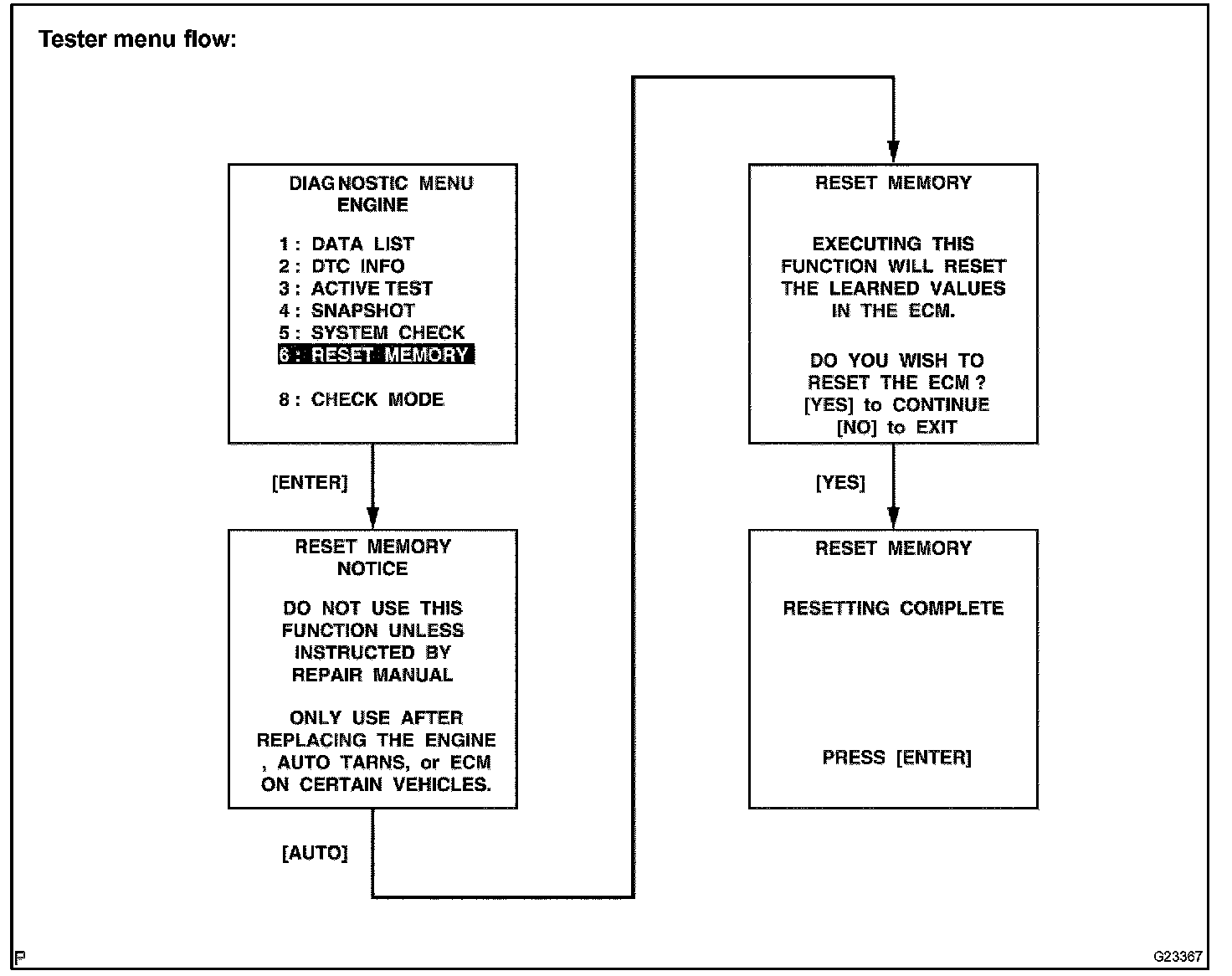 CAUTION: After performing the RESET MEMORY, be sure to perform the ROAD TEST described earlier. Road Test