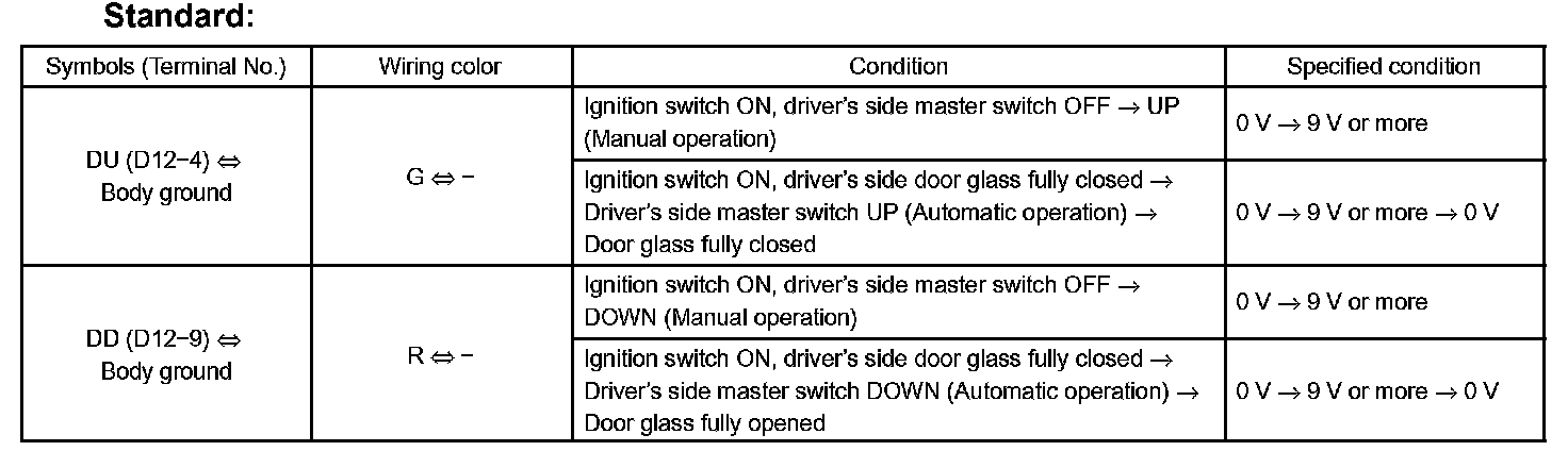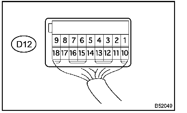 b. Reconnect the D12 master switch connector, and check the voltage of each terminal of the connector.