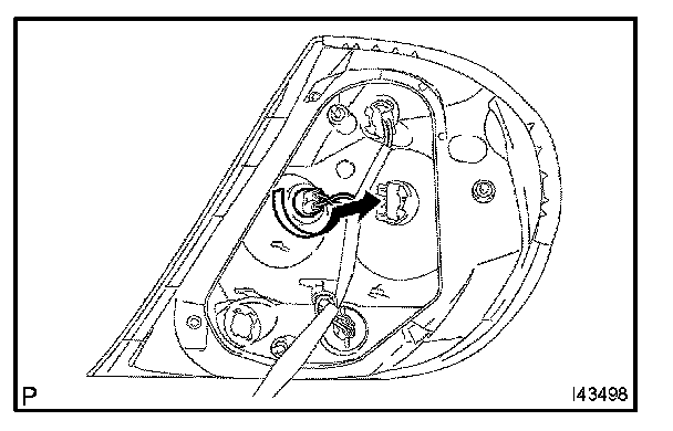 a. Turn in the direction indicated by the arrow and remove the rear combination lamp socket & wire sub-assembly RH and the rear combination lamp bulb as a unit.