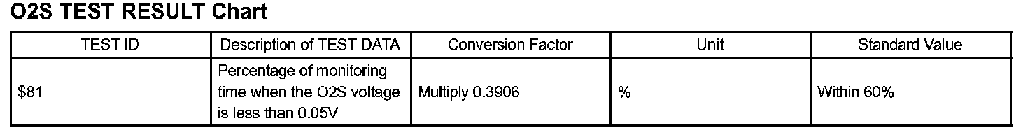 In this, the description of the O2S TEST RESULT (for O2S related DTCs) are written in a table.