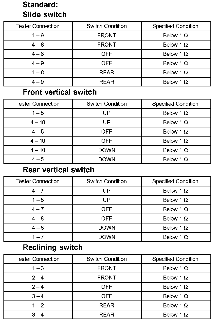 INSPECT FRONT POWER SEAT SWITCHDriver's seat: