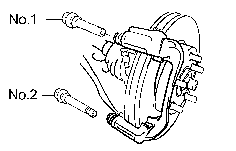 a. Remove the front disc brake cylinder slide pin (No. 1) and front disc brake cylinder slide pin (No.2) from the front disc brake cylinder mounting LH.