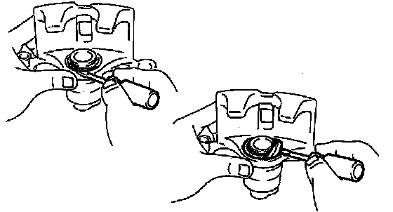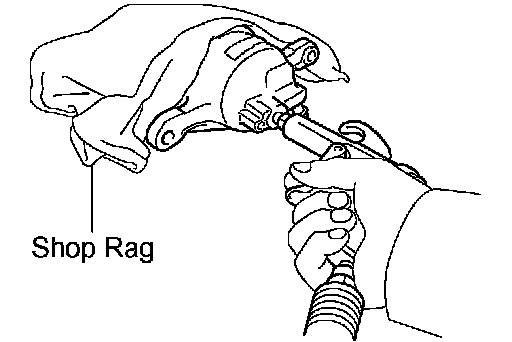 a. Place a shop rag between the front disc brake piston and the disc brake cylinder sub-assembly.