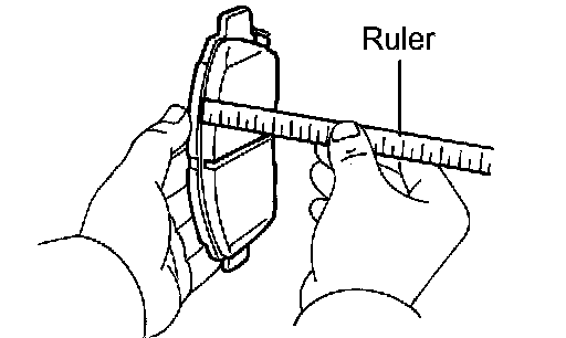 If the pad lining thickness is equal to the minimum thickness or less, replace the brake pad.