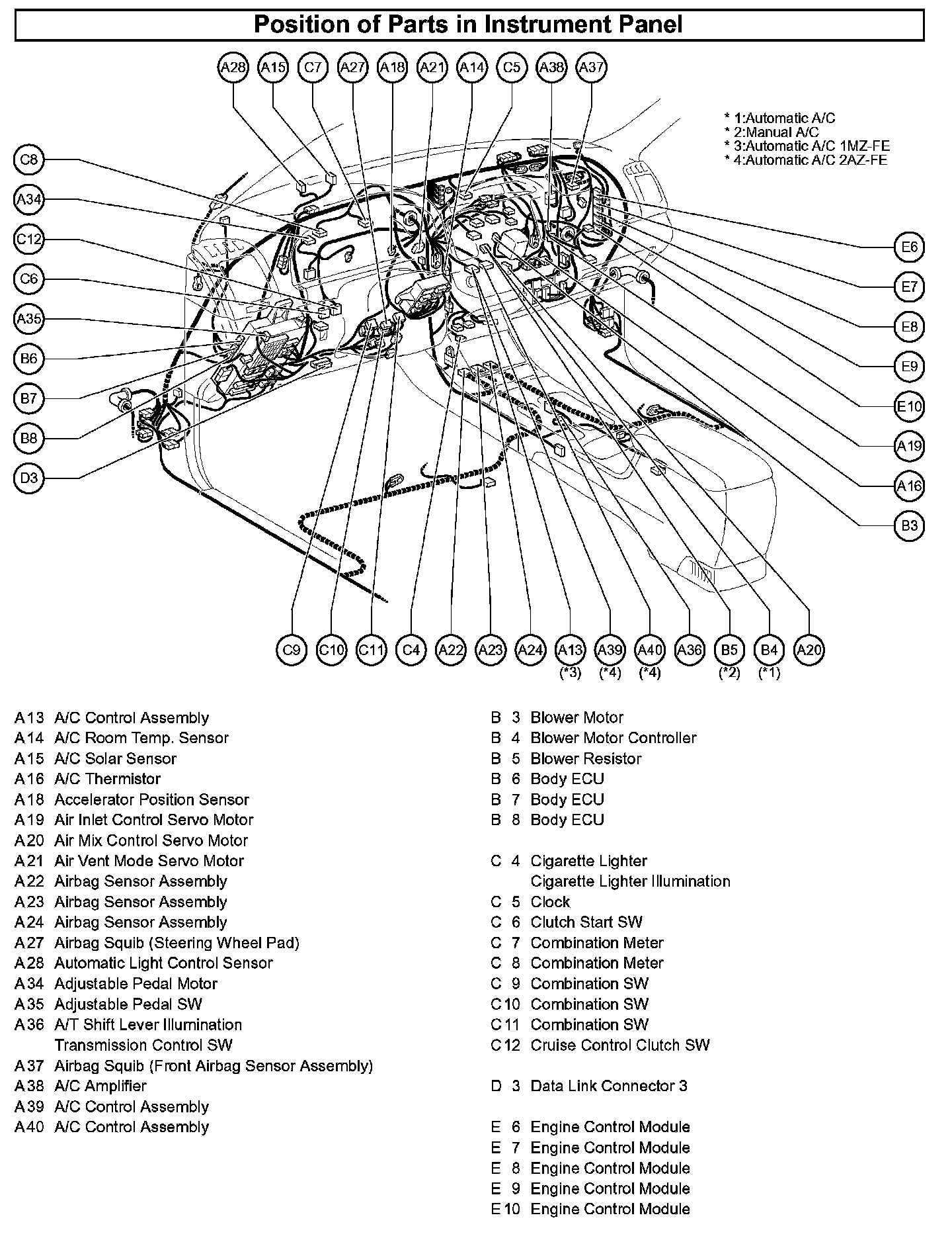 Position of Parts In Instrument Panel