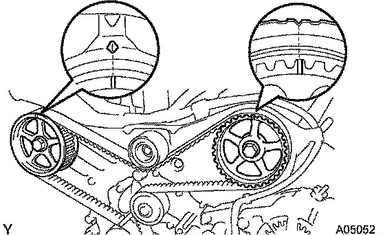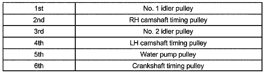 HINT: Arrange the camshaft timing pulleys (RH and LH sides) so that they can be returned to the original locations when reassembling.