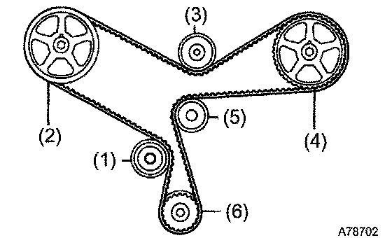 1. If the installation marks have disappeared, put new installation marks on the timing belt before removing.