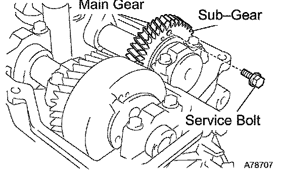 b. Secure the exhaust camshaft sub-gear to the main gear with a service bolt.