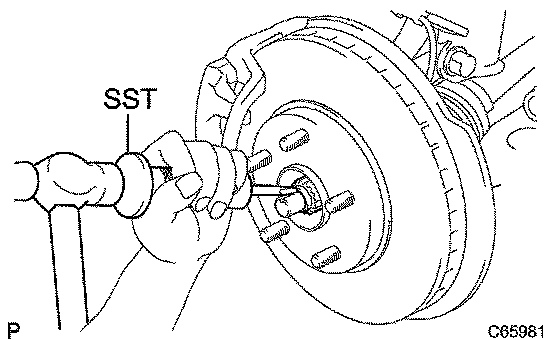 ^ Set the drive shaft's groove so that it faces up. Then use the SST and hammer.