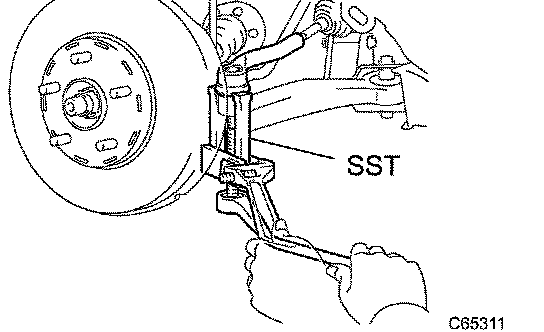 b. Using SST, disconnect the tie rod end from the steering knuckle.