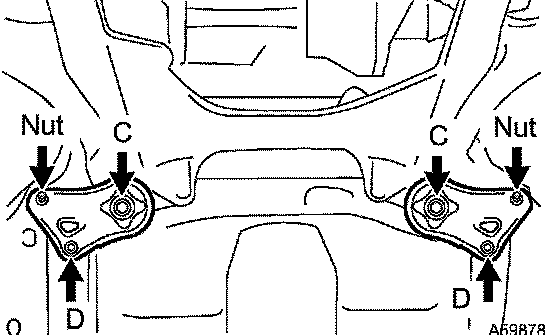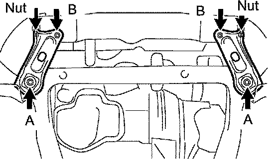43 Nm (438 kgf-cm, 32 ft. lbs.) for nut A