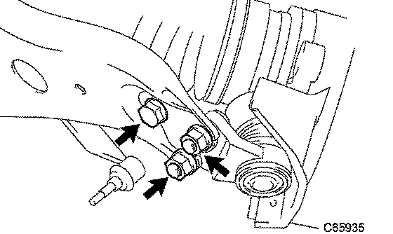 b. Install the suspension lower arm with the bolt and 2 nuts.