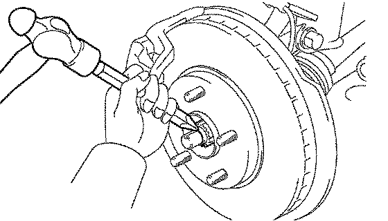 b. Using a chisel and hammer, tapped the front axle hub LH nut.