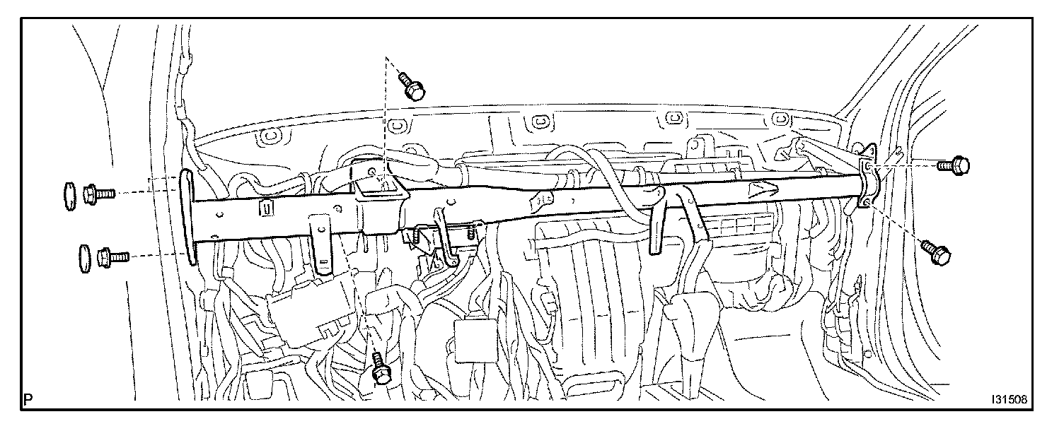 a. Install the instrument panel reinforcement with the 7 bolts and 3 caps.