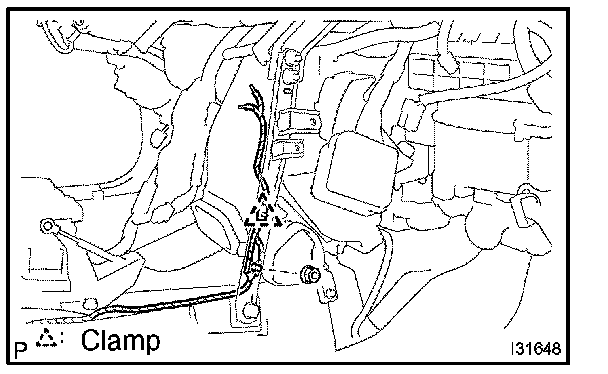 HINT: Confirm the direction of the piping clamp claw and SST using the illustration showing on the caution label.