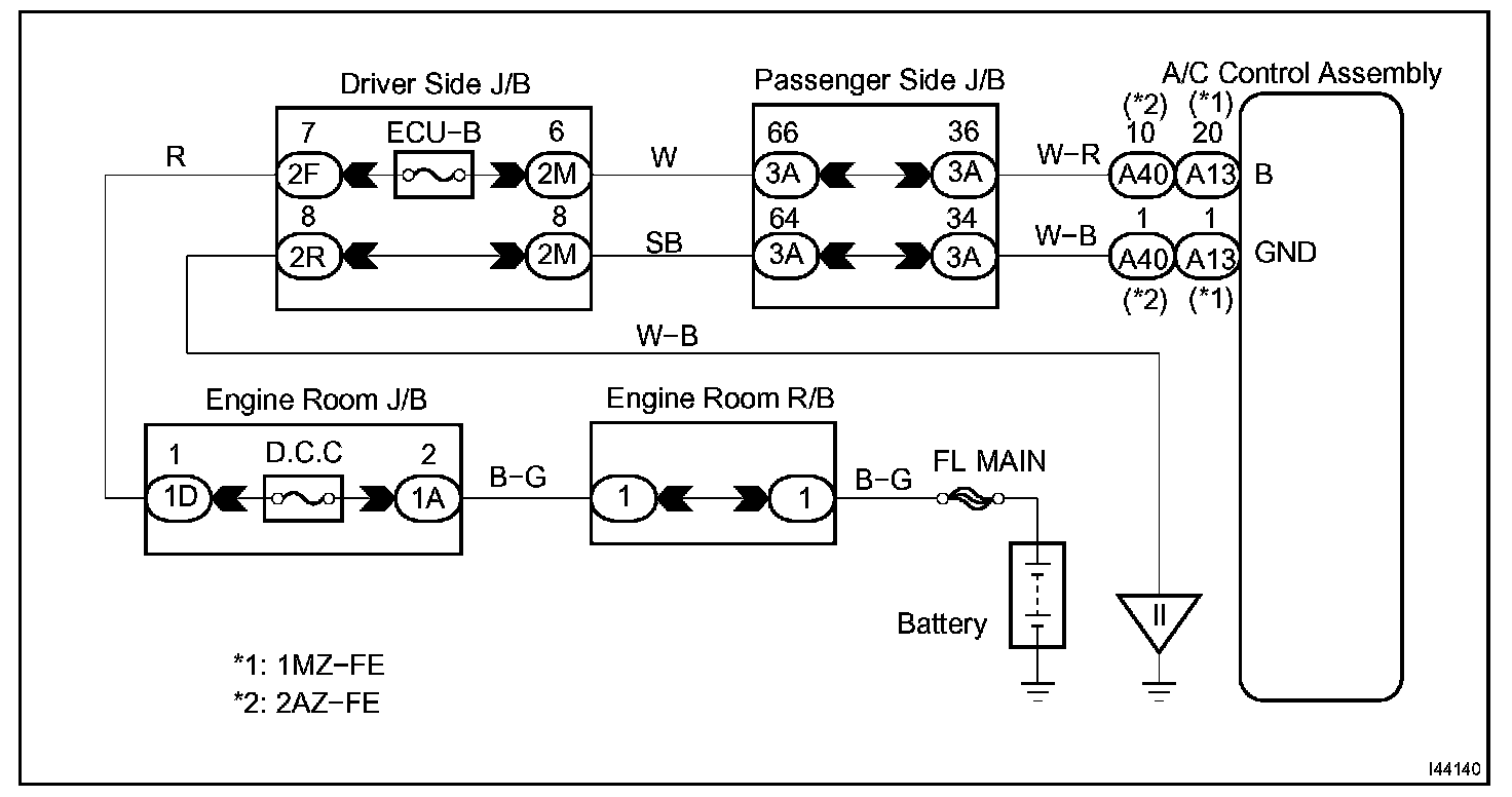 This is the back-up power source for the air conditioner amplifier. Power is supplied even when the ignition switch is off and is used for diagnostic trouble code memory, etc.