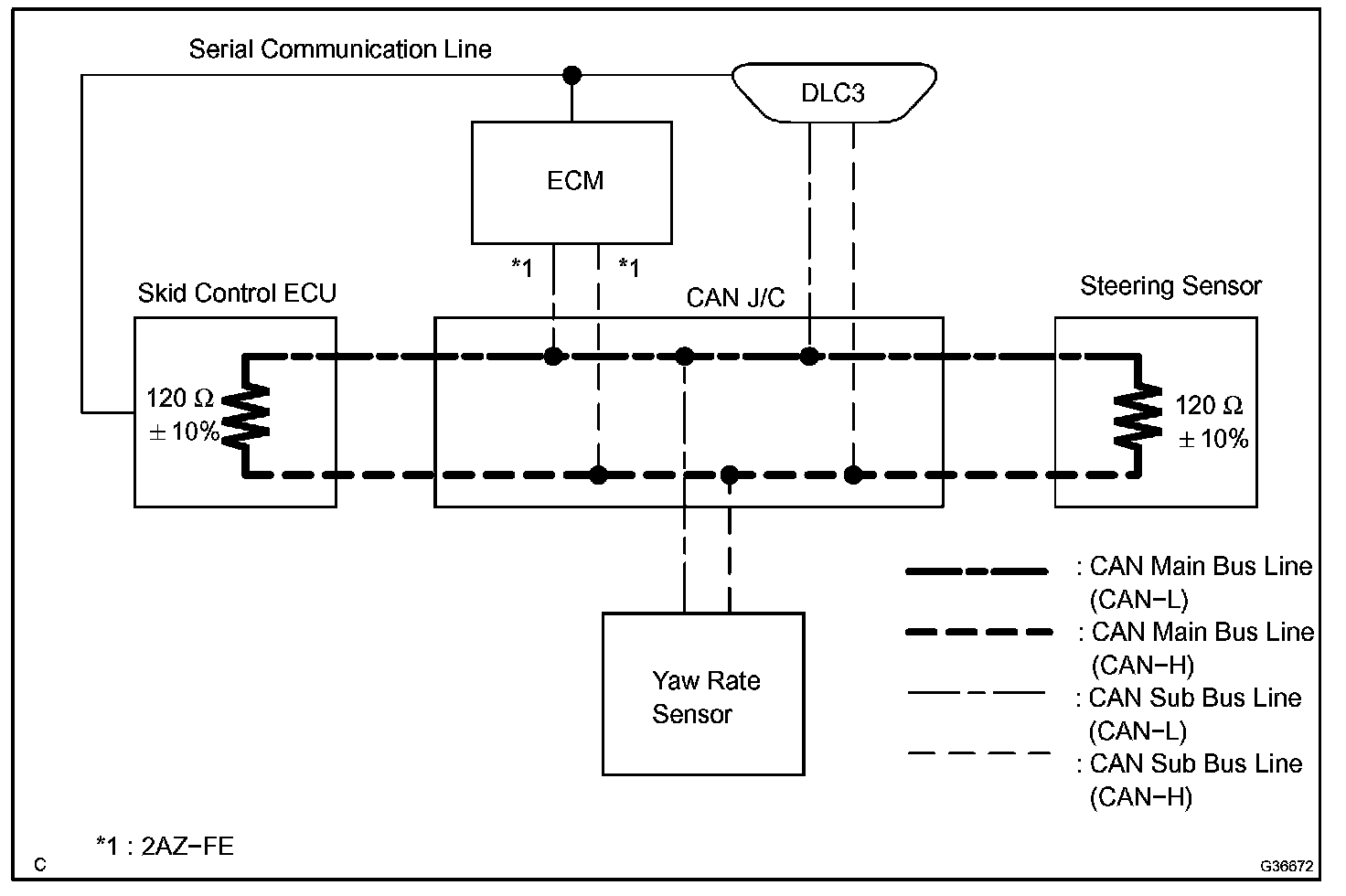 1. Sub bus line is a wire harness which diverges from the main bus line, which is the main bus of the CAN bus, to an ECU or sensor.