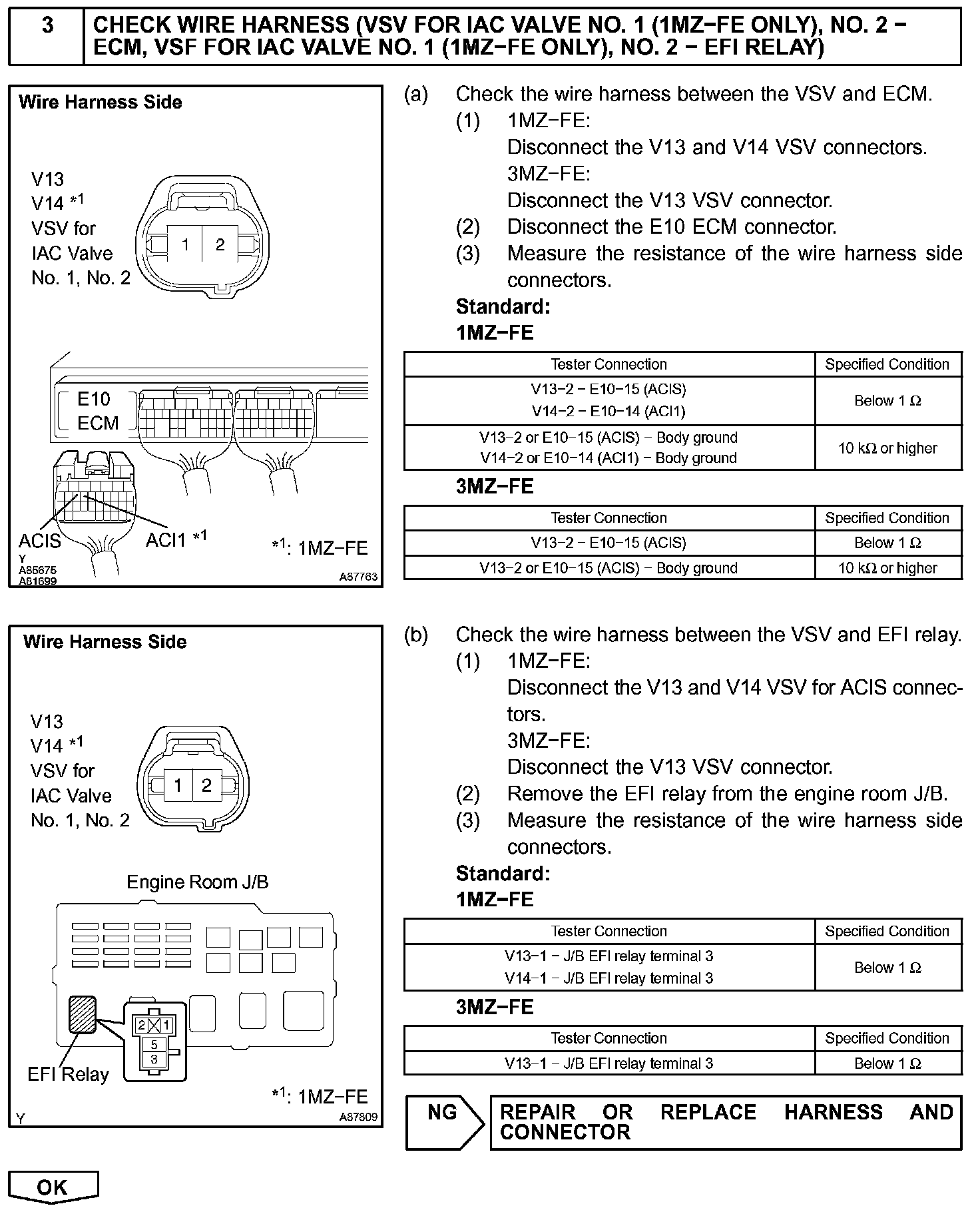 - The 1MZ-FE engine has 2 VSVs (No.1 and No.2)