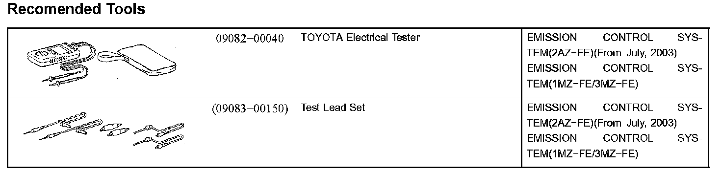 Emission Control-Recommended Tools: