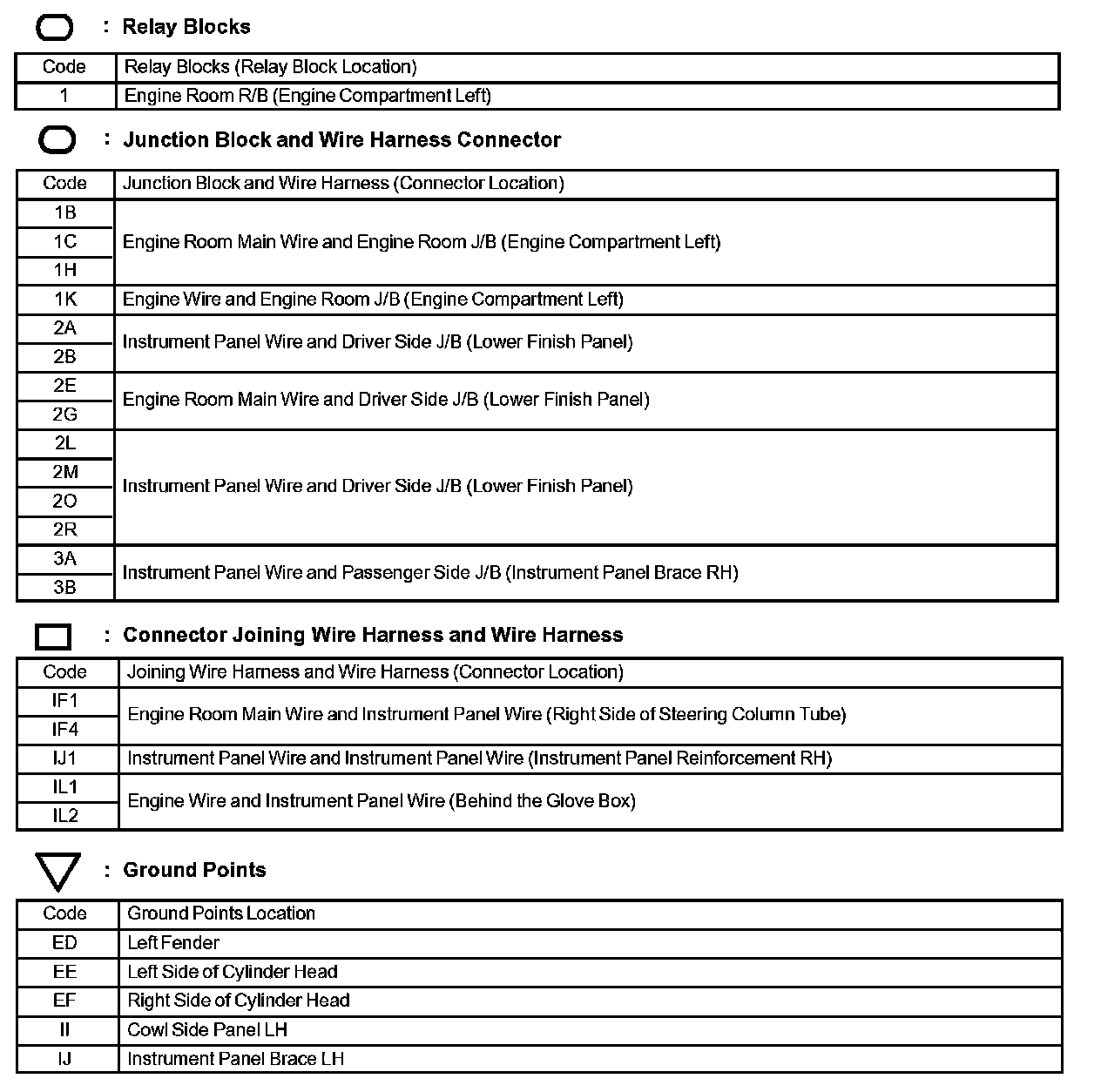 Locations: The locations of components, connectors, ground points, and splices referred to within these diagrams can be found at Vehicle Locations. Locations