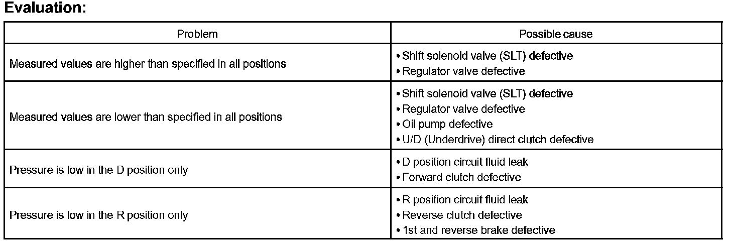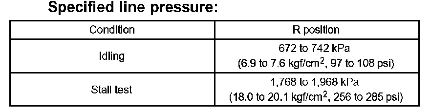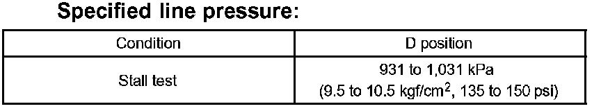 11. Firmly depress the brake pedal, shift to the D position, depress the accelerator pedal all the way down and check the line pressure while the stall test is performed.