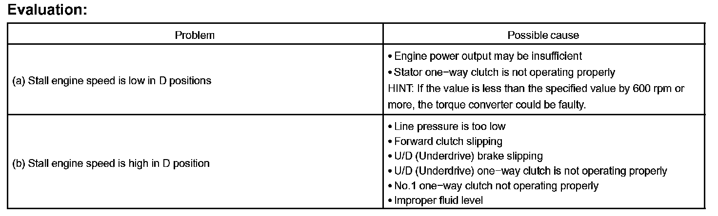The object of this test is to check the overall performance of the transaxle and engine by measuring the stall speeds in the D positions.
