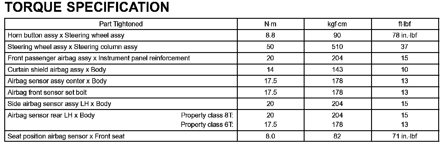 Supplemental Restraint System-Torque Specification: