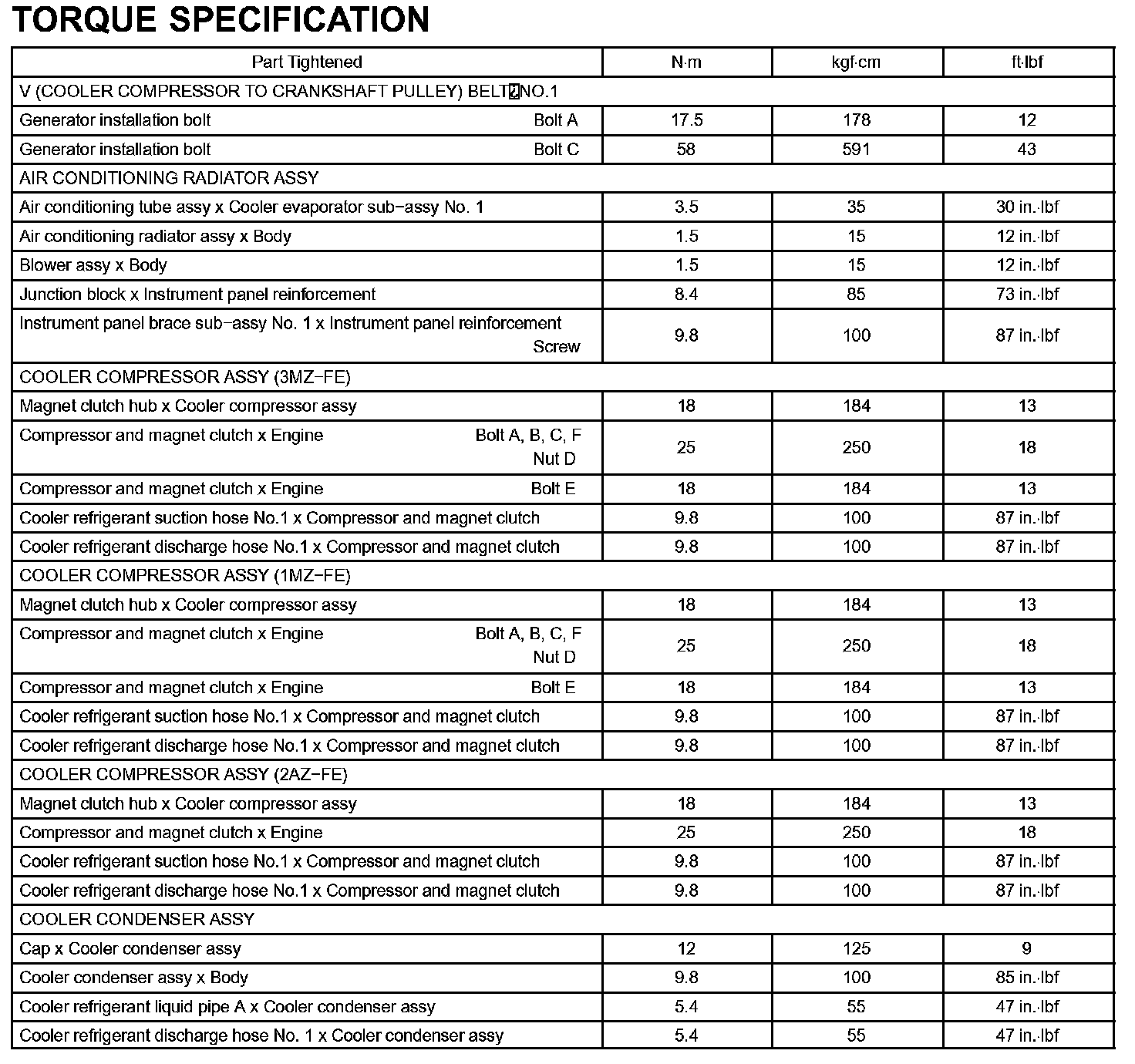 Heater And Air Conditioning-Torque Specification: