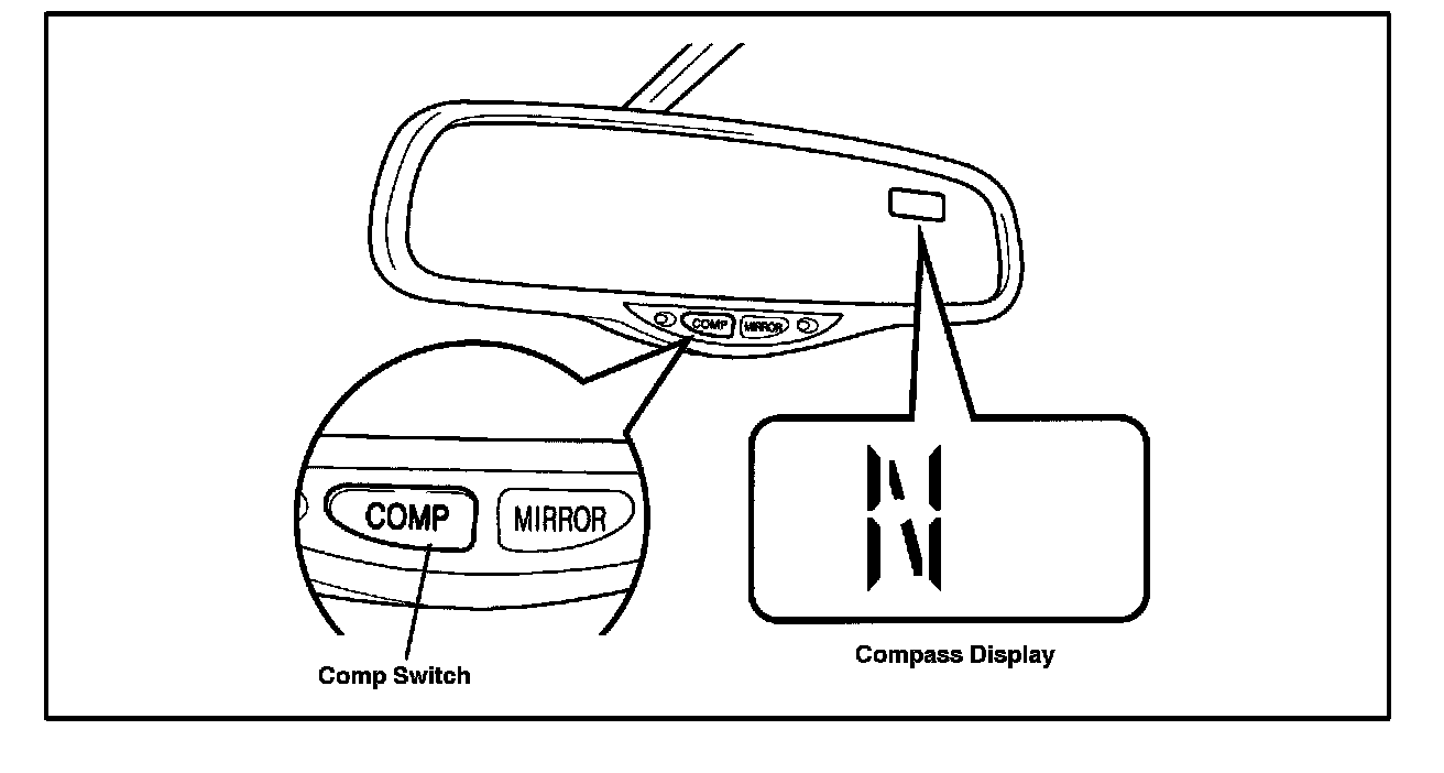 1. Turn the ignition switch to the "ON" position and check that the direction (N, NE, E, SE, S, SW, W, NW) appears on the compass display.