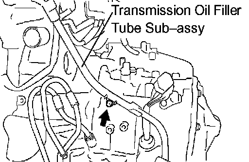 c. Remove the bolt and transmission oil filler tube sub-assembly.
