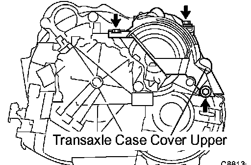 a. Remove the 3 bolts and transmission case cover upper.